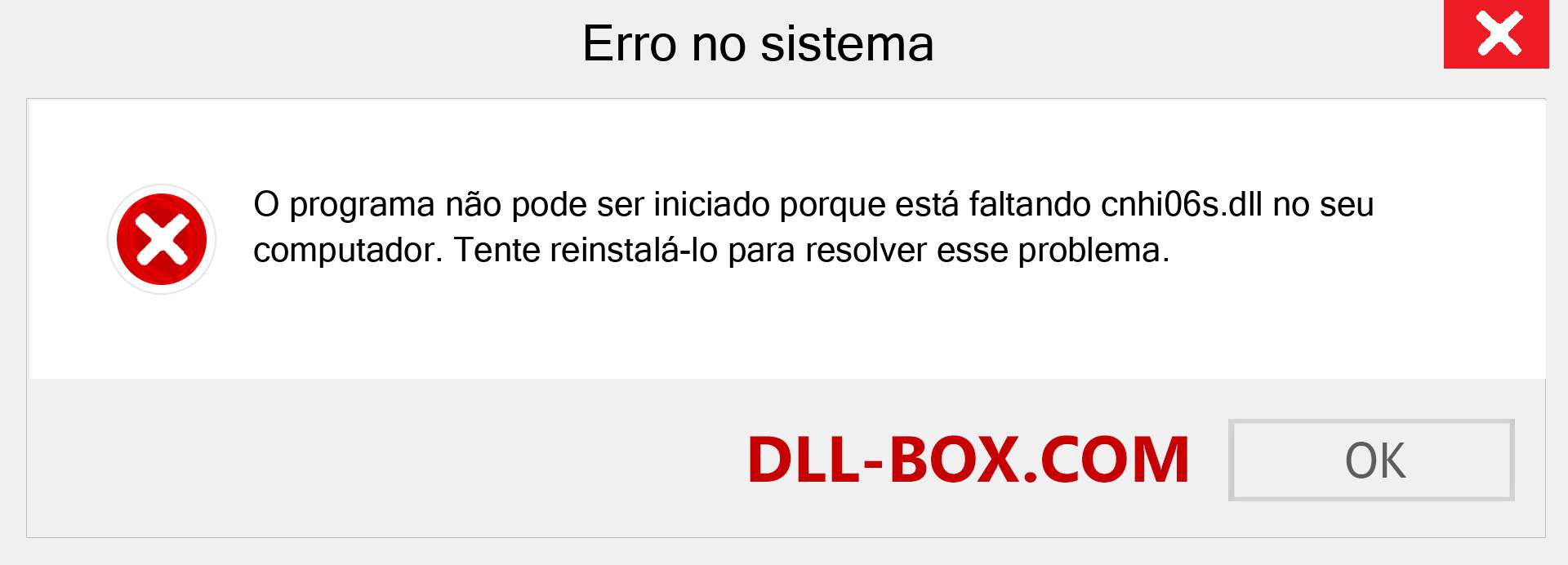 1. O programa não pode ser iniciado porque está faltando cnhi06s.dll do seu computador. Tente reinstalar o programa para resolver este problema.
